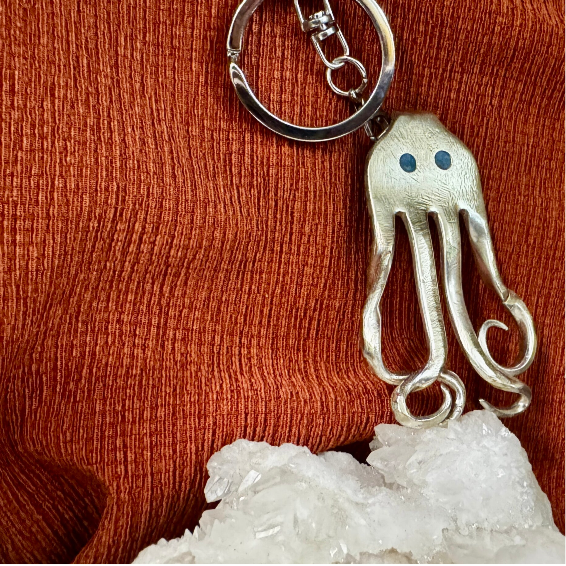 A hand-formed octopus pendant crafted from vintage silver-plated flatware — shaped with intention and finished by hand. A symbol of intelligence, adaptability, and quiet strength, each piece carries both meaning and history.