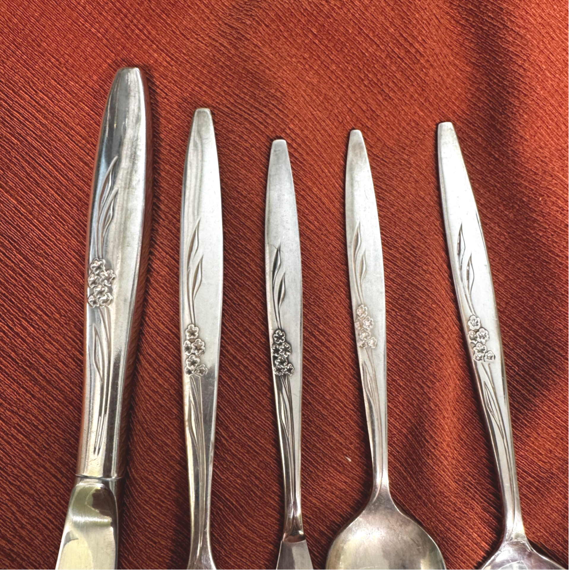 Introduced in 1960 by Oneida Community, Enchantment – Gentle Rose is one of the most iconic romantic patterns of the mid‑20th century. Its raised rose motif, soft curves, and graceful mid‑century silhouette made it a popular wedding and anniversary pattern for decades. With production lasting until 2006, it became a beloved heirloom pattern across generations. Today, it remains highly collectible and exceptionally beautiful for jewelry making thanks to its sculptural floral detail and reliable structure.